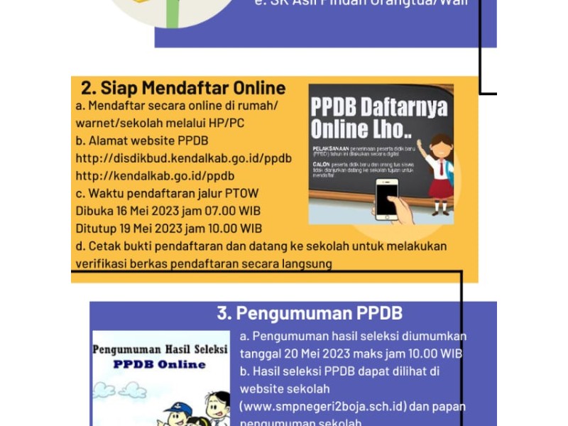 Ayo Calon Peserta Didik Baru, daftarkan diri kalian segera di PPDB SMP Negeri 2 Boja Tahun Ajaran 2024/2025.Cermati alur dan syarat pendaftarannya di flyer berikut ...